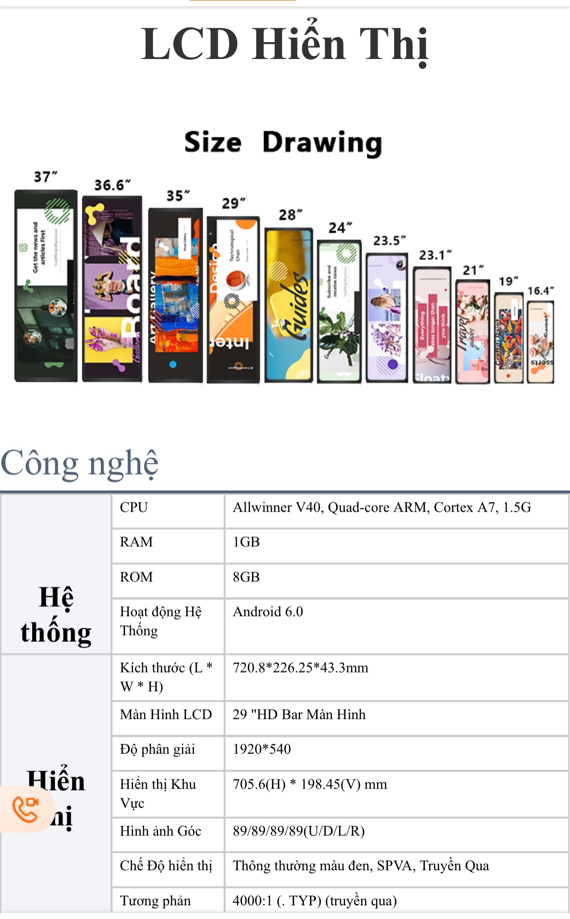 | Công nghệ màn hình | LCD / IPS |