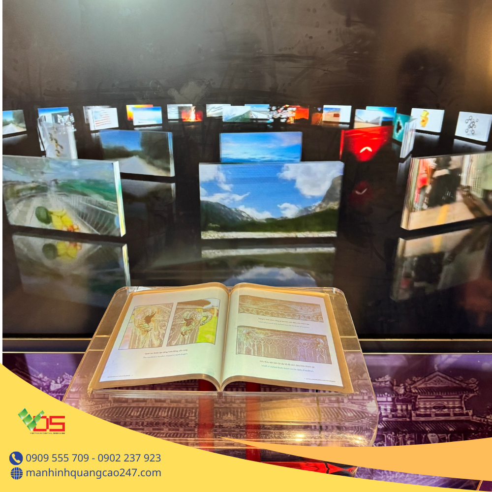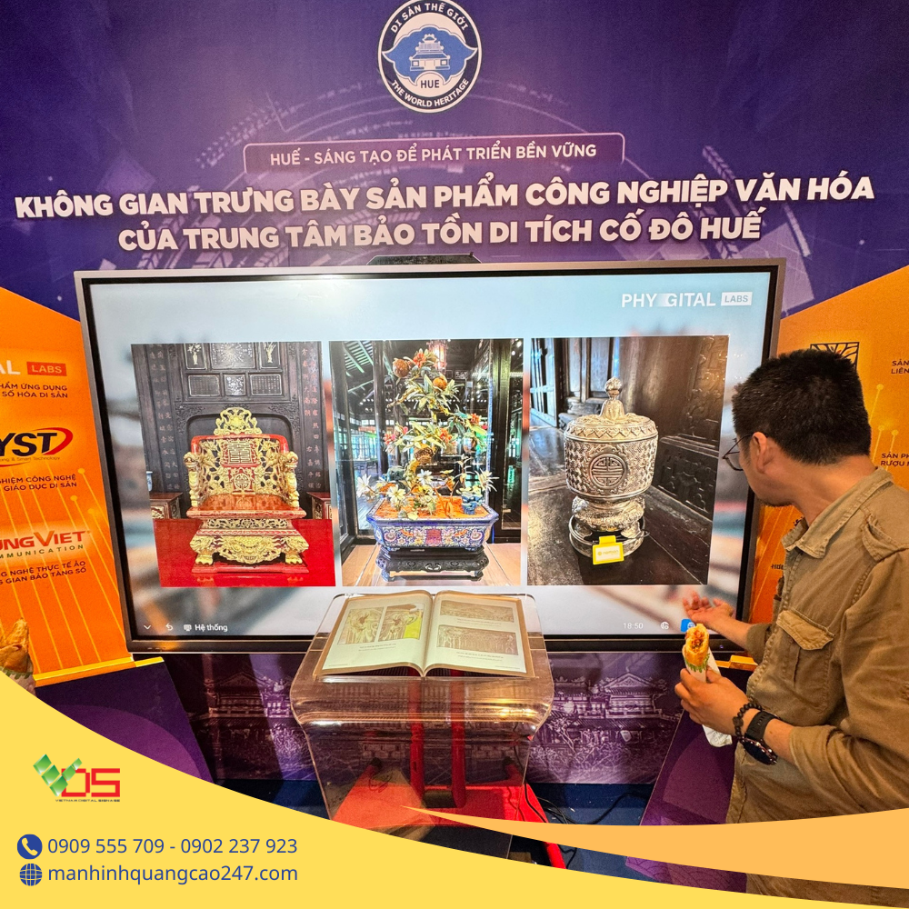 Tại Trung tâm Bảo tồn Di tích Cố đô Huế, sách tương tác có thể trở thành một “cánh cửa số” để du khách tiếp cận di sản một cách gần gũi hơn. Thay vì đọc những phần mô tả dài và khô, khách tham quan có thể tương tác trực tiếp với từng chủ đề: khám phá chi tiết hoa văn cung đình, xem mô hình 3D cổ vật, nghe thuyết minh đa ngôn ngữ, hoặc theo dõi diễn biến lịch sử thông qua hình ảnh động. Điều này đặc biệt phù hợp với định hướng số hóa di sản mà Huế đang theo đuổi. ng tâm trưng bày sản phẩm công nghiệp**, sách tương tác công nghệ số lại đóng vai trò như một công cụ giới thiệu sản phẩm hiện đại, chuyên nghiệp và giàu tính kết nối. Không chỉ trưng bày sản phẩm một cách tĩnh, trung tâm có thể sử dụng sách tương tác để kể câu chuyện về nguồn gốc sản phẩm, quy trình sản xuất, tiêu chuẩn chất lượng, công năng ứng dụng, bản sắc địa phương và định hướng phát triển công nghiệp – tiểu thủ công nghiệp. Đây là giải pháp rất phù hợp cho hoạt động quảng bá sản phẩm công nghiệp, sản phẩm OCOP, sản phẩm làng nghề và các dòng hàng mang dấu ấn Huế.