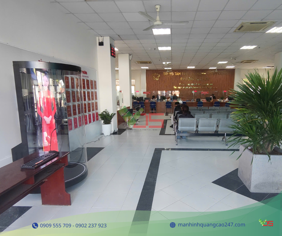 Thiết bị hiển thị chuyên dụng: Màn hình độ sáng cao, loa rõ ràng, micro định hướng, camera (tuỳ chọn) cho điều khiển cử chỉ/đếm lượt.